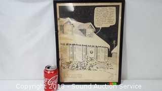 Signed Webster, New York Tribune, September 24th. The original is mounted to the back. Approx. 13" x 17".