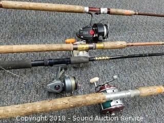 Lot #0018: 4 Vtg. Fishing Rods & Reels