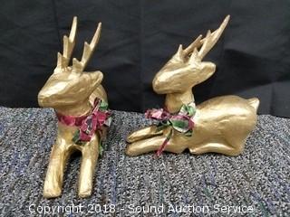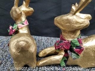 Lot #0194: 4pc. Paper Mache Golden Reindeer Decor