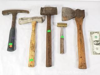 Lot #0356: 5 Various Hammers, Mallets & Hatchet