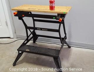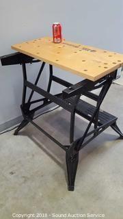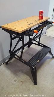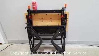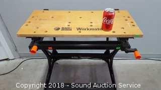 Has a tabletop vise. Approx. 21" x 13" vise surface area.