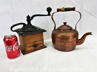 Lot #0245: Copper Teapot & Coffee Mill
