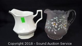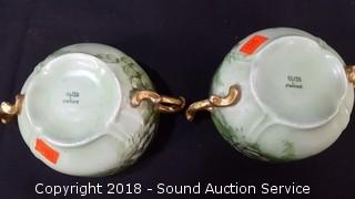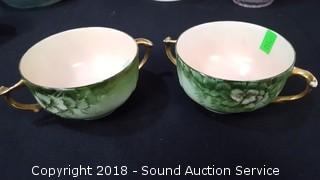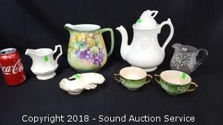 Includes: Elite France Limoges 2-Handled Cups, Hand Painted Bavarian Moschendorf Pitcher, Small Hand Painted Pitcher. Others are unmarked.
