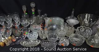 Includes: Decanters, Stemware, S/P's, Cheese Dish, Creamers, Sugars, Vases, and more.