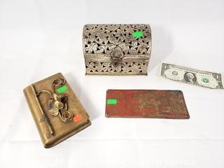 Lot #0086: Metal & Brass Trinket Boxes & Murphy Diesel Sign