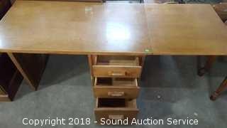 Lot #0114: Nice 3-Drawer Drop Leaf Desk