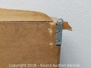 Has plate grooves, made in California. Well made. Approx. 23" H, 41" W, 5-1/2" D.