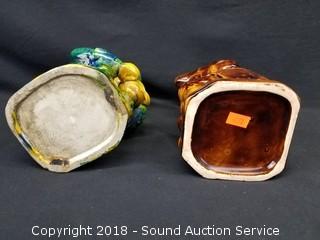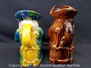 Lot #0004: Pair of Glazed Pottery Vtg. Character Mugs