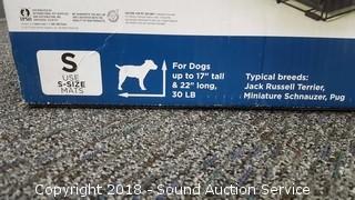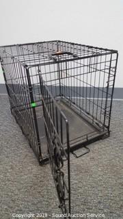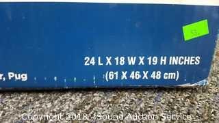 Kennel is approx. 24" L, 18" W, 19" H, comes with original box.