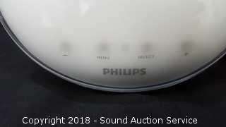 The Philips Wake-up Light Alarm Clock features a nature-sounds alarm and a colored sunrise simulation. This light-therapy device emits morning light that changes from soft red to warm orange to bright yellow, gently and gradually waking users with natural light. The alarm comes with a choice of five different natural and calming wake-up sounds. It also has an FM radio and a tap-to-snooze feature. At night, the bedside light dims gradually to promote natural, restful sleep.
