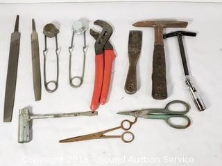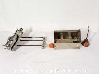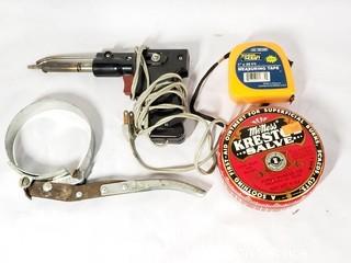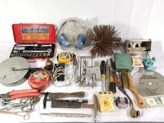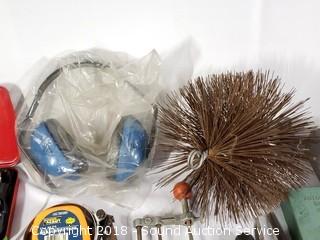 Includes: Metal Oil Can, Socket Set, Chimney Sweep Brush, Adjustable Wrench, Soldering Gun, Ear Protection, and more.