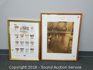 Lot #0016: Vtg. Fly Fishing Photo & Framed Lure Poster