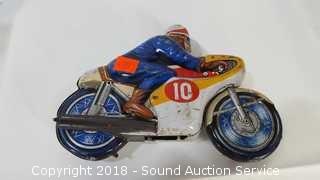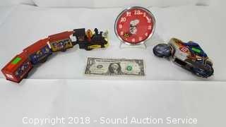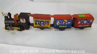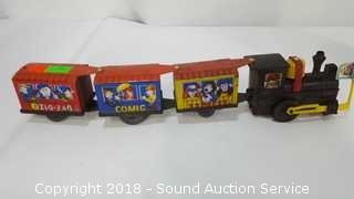 Lot #0072: Vtg Tin Toy Train, Motorcycle & Snoopy Alarm Clock