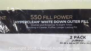 Jumbo, 20" x 28". 500 thread count, all cotton cover, 550 fill power, white down outer fill, resilia feather inner fill.