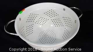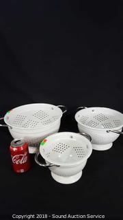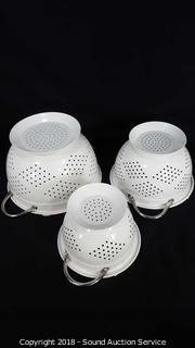 Lot #0343: 3 White Enamelware Colanders