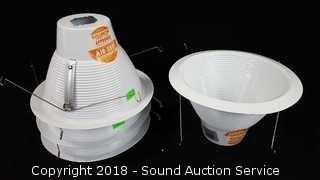 Includes: (4) NEW White Metal 5-1/4" x 7-3/4" Recessed Light Fixtures, Funnel, and V-Tech Cordless Answering System, In Original Box.