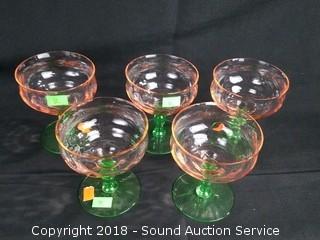 Lot #0050: 5 Vtg. Pink & Vaseline Glass Sherbet Glasses