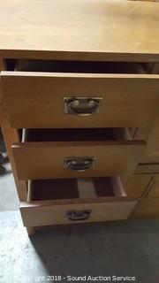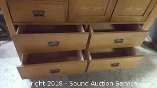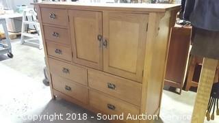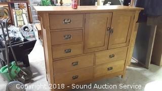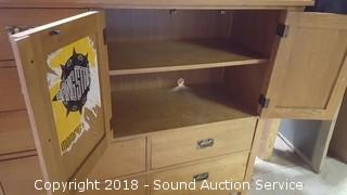 7 Drawers & cabinet with adjustable shelf. Gang Star Poster on one of the inside cabinet doors. Approx. 45" H x 54" W x 19" D.