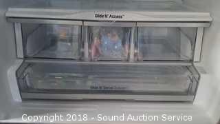 Does not cool, otherwise in like new condition, still has most of the original plastic on it, lights all come on. Stainless steel. Manufactured 09/2015. Model LFXS30766S. Serial 509KRYPO4978. Approx. 70-1/4" H, 36-1/4" D, 35-3/4" W.