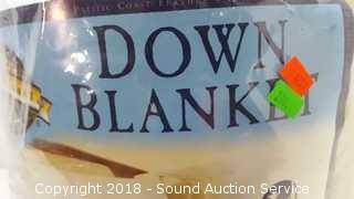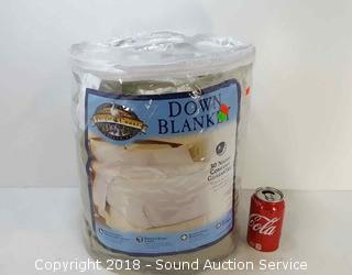 90" X 96". 100% Cotton Cover, 75% Down Fill.
