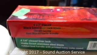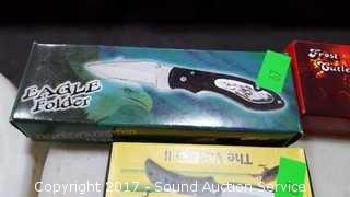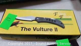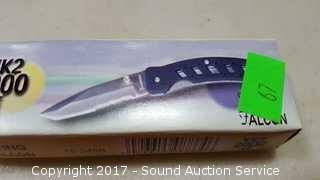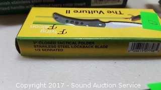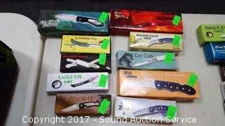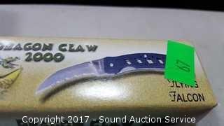 Whitetail Guthook, Flying Falcon, Bandit II, Eagle Eye Knife, Cat Club, Military Knife, Dragon Claw, The Vulture II, Eagle Folder & American Fighter. PLEASE REFER TO PHOTO'S FOR SPECS.