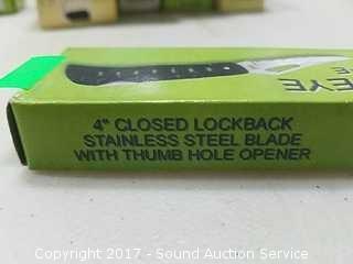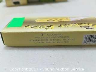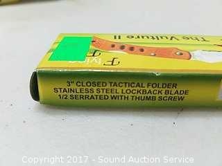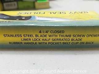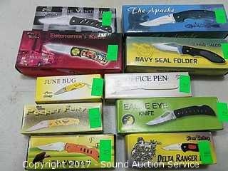 Firefighters Knife, Navy Seal Folder, The Apache, The Ventilator, June Bug, Office Pen, Pocket Fury, Eagle Eye Knife, The Vulture II & Delta Ranger II. PLEASE REFER TO PHOTO'S FOR SPECS.