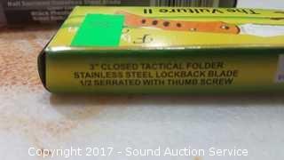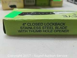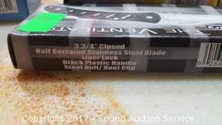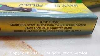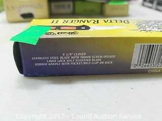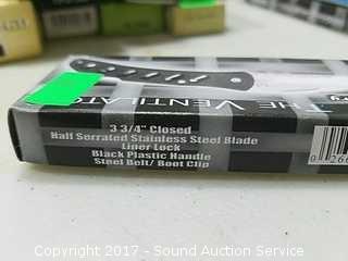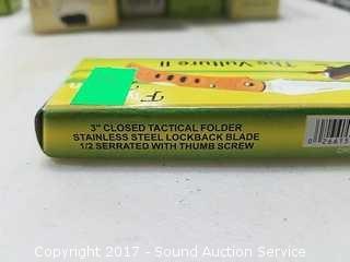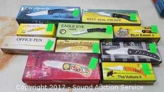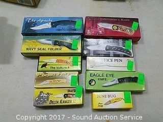 Firefighters Knife, Navy Seal Folder, The Apache, The Ventilator, June Bug, Office Pen, Pocket Fury, Eagle Eye Knife, The Vulture II & Delta Ranger II. PLEASE REFER TO PHOTO'S FOR SPECS.