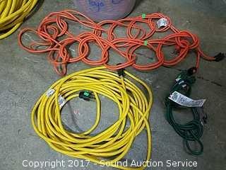 Lot #0217: 50ft AWG 12/3 Gauge, (2) 25ft & 10 ft Extension Cord