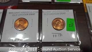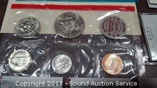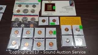 Includes: Brilliant uncirculated wheat cents, 1972 proof set, mixed proof set, and gold stamp.