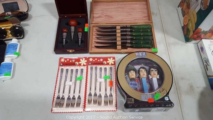 Lot #0096: Inox Steak Knives, Elvis Pez, Wine Stoppers & More