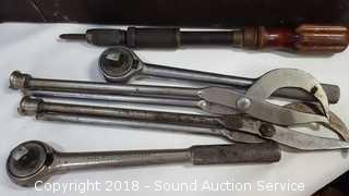 Includes: Tons of Files, Ratchets, Pully Tools, Ratcheting Screwdrivers, and more. Approx. 19" and 20" L.