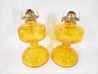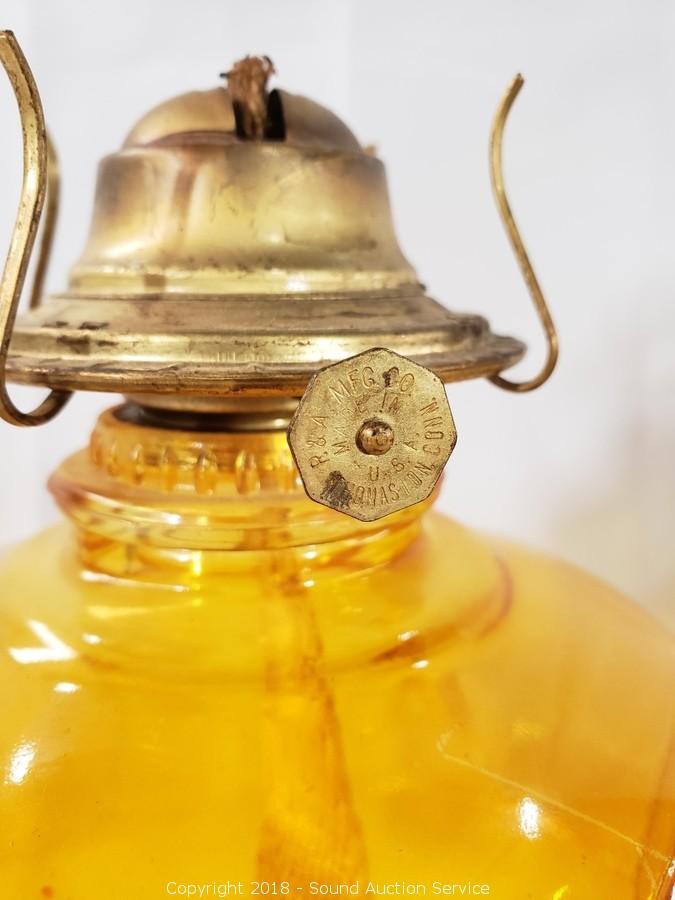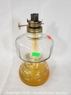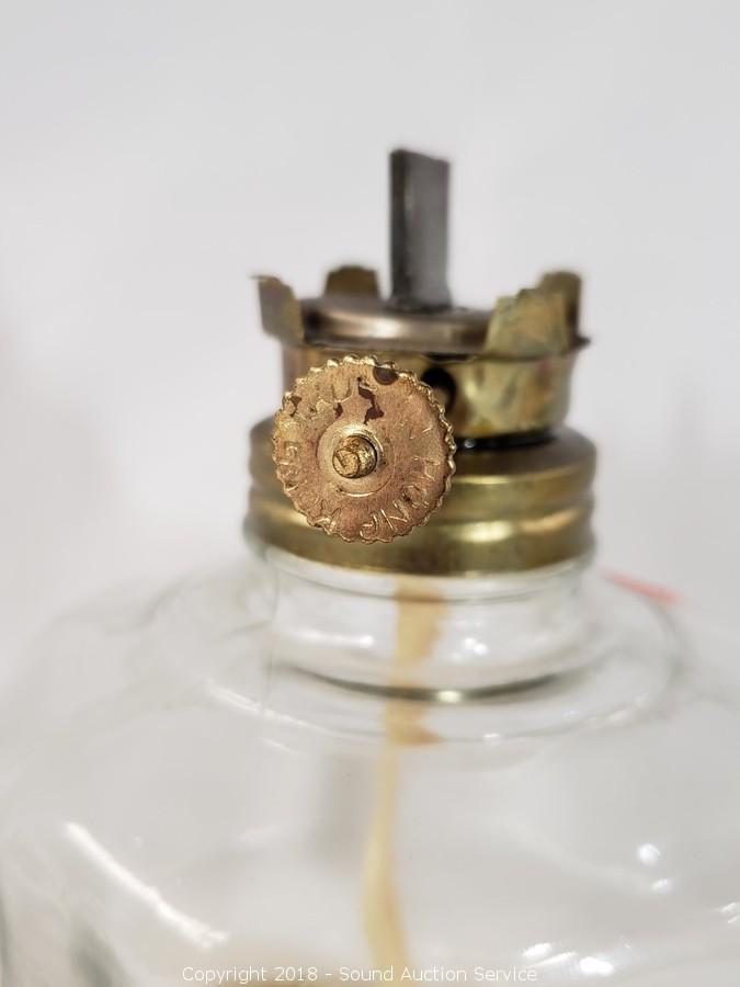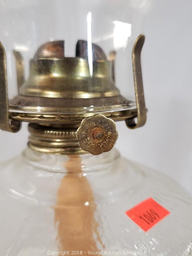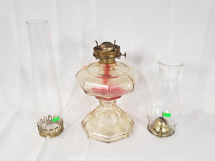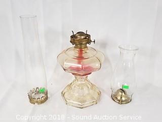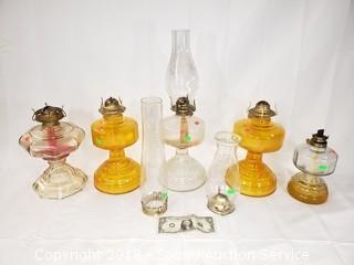 Lot #0249: 5 Vtg. Oil Lamps & Various Chimneys