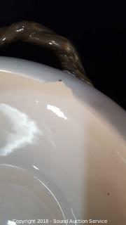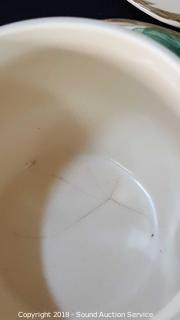 This auction is consists of a mixed variety of estate items. Includes: Vtg. Cast Iron Enamelware Stove, Norwegian Ice Axe, Drop Front Secretaries, Suit Butlers, Hutches, Guitars, Sewing Fabrics, Fransicanware, Silverplate, Yard Art, Yard Tools, Fountains, Vtg. Tools & Toolboxes, Mid-Century Clocks, Accuquilt Go! Cutter & Dies, Utility Cabinets, Firepit, Whirlpool Washer & Much More!