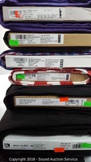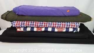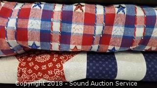Patriotic Star Quilt Patch Pattern, Plaid, Red White Blue Star Pattern, Crushed Olive Microsuede, Solid Purple, Black Felt, and Black Textured Pleather.