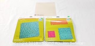 Comes with 10" x 10" cutting mat. One die cuts squares 2-1/2" and 4-1/2" and 2" half squares. Other die cuts 6-1/2" triangles.