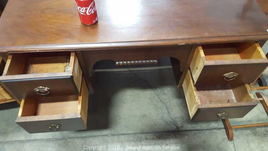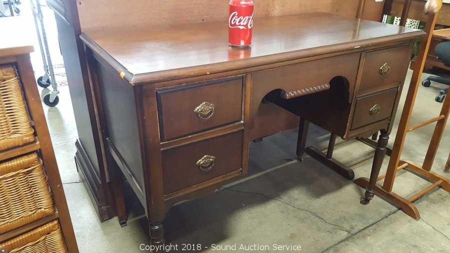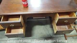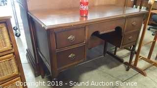 Lot #0011: Antique 4-Drawer Desk on Casters