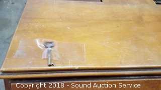 Skeleton key lock, comes with key. Claw feet, drawers are dovetail construction. Has some wear to the finish. Approx. 43" H, 31" W, 17" D.