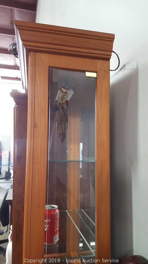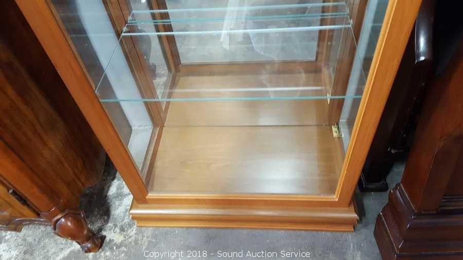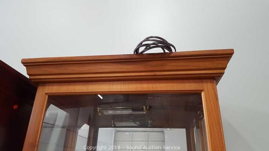 Lot #0015: Beautiful Maple Lighted Curio Cabinet