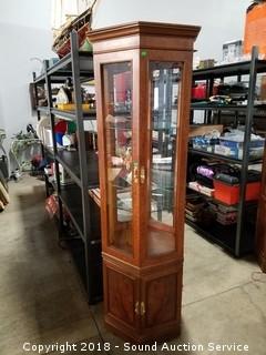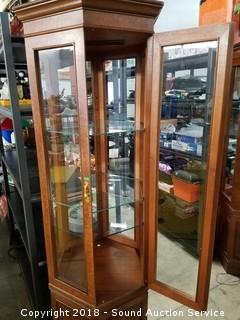 Lot #0316: Birdseye Maple Finish Lighted Curio Cabinet