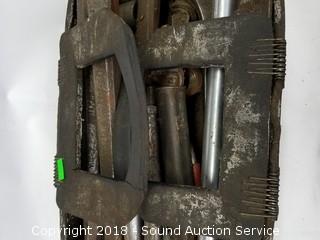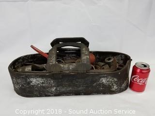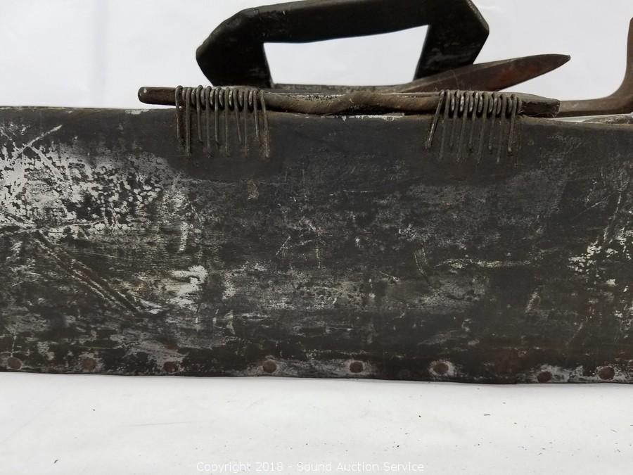 This auction is consists of a mixed variety of estate items. Includes: Vtg. Cast Iron Enamelware Stove, Norwegian Ice Axe, Drop Front Secretaries, Suit Butlers, Hutches, Guitars, Sewing Fabrics, Fransicanware, Silverplate, Yard Art, Yard Tools, Fountains, Vtg. Tools & Toolboxes, Mid-Century Clocks, Accuquilt Go! Cutter & Dies, Utility Cabinets, Firepit, Whirlpool Washer & Much More!