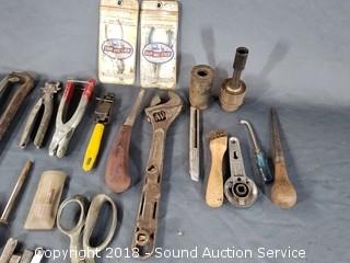 This auction is consists of a mixed variety of estate items. Includes: Vtg. Cast Iron Enamelware Stove, Norwegian Ice Axe, Drop Front Secretaries, Suit Butlers, Hutches, Guitars, Sewing Fabrics, Fransicanware, Silverplate, Yard Art, Yard Tools, Fountains, Vtg. Tools & Toolboxes, Mid-Century Clocks, Accuquilt Go! Cutter & Dies, Utility Cabinets, Firepit, Whirlpool Washer & Much More!