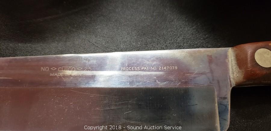 Includes: #25 Chef Knife (Broken Tip), #24 Bread Knife, #21 Filet Knife, #20 Paring Knife, #23 Slicing Knife, and #22 Chopping Knife.
