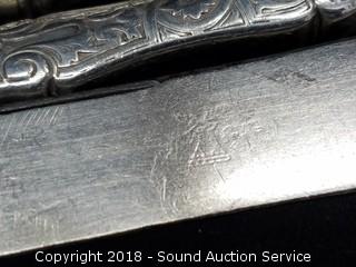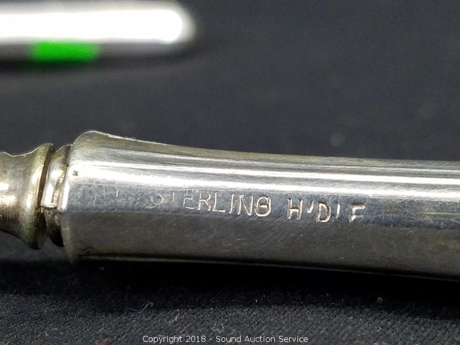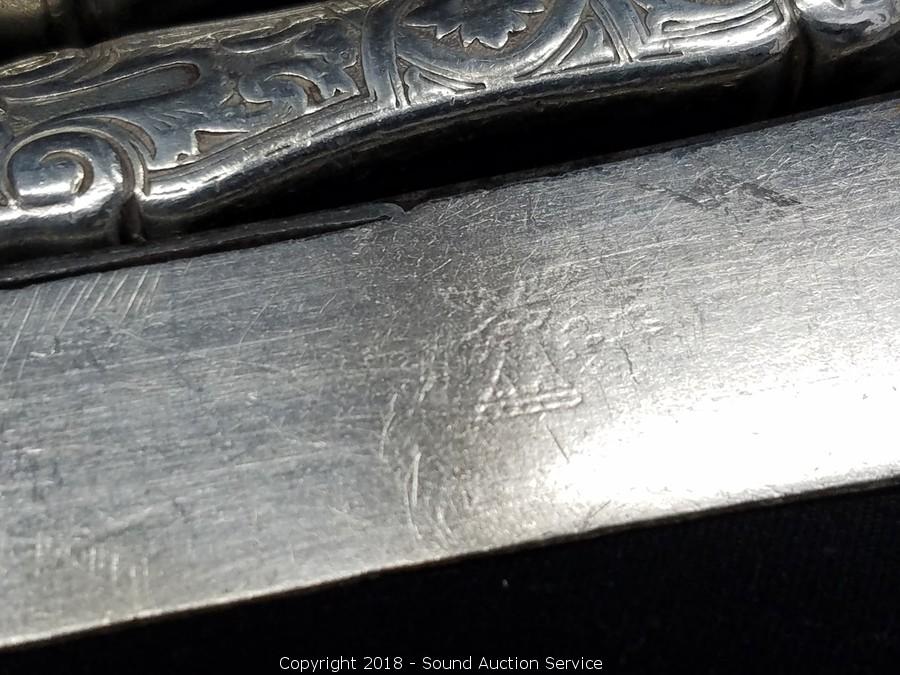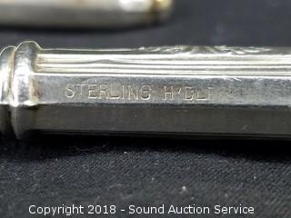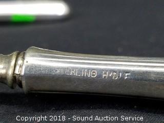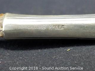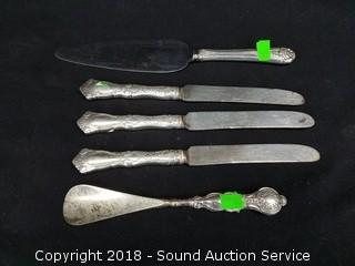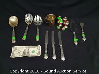 All are sterling silver. Knives and spoons total weight: 490 grams. Cup and S/P's total weight: approx. 80 grams.