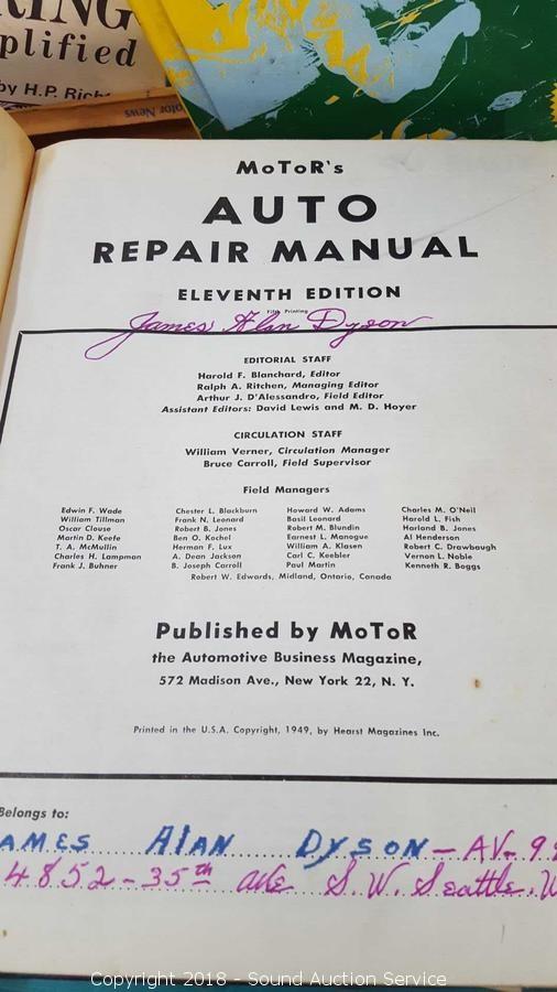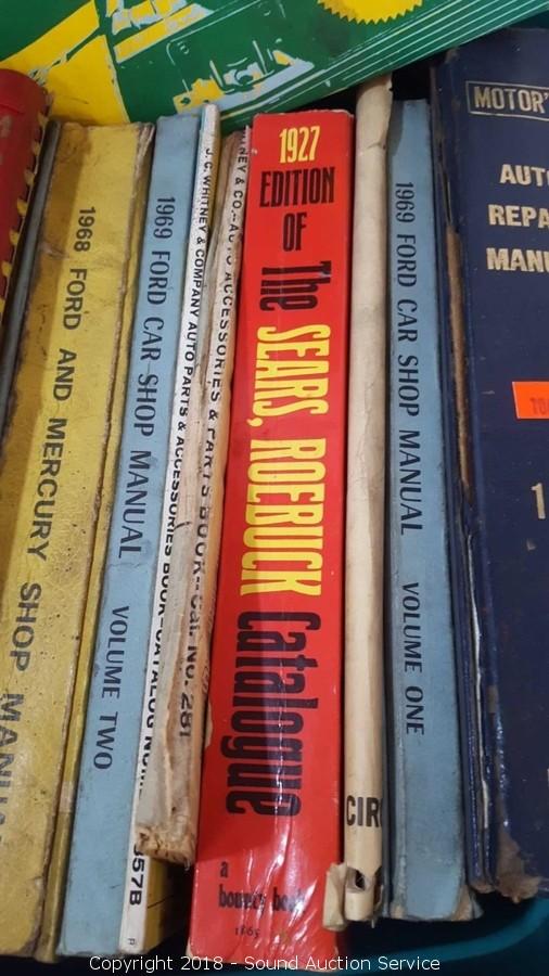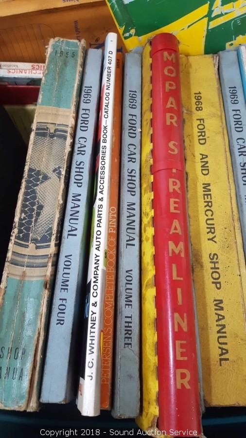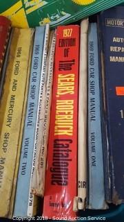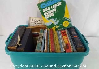 Lot #0062: Tote w/Vtg. 1950's & 60's Auto Repair Manuals
