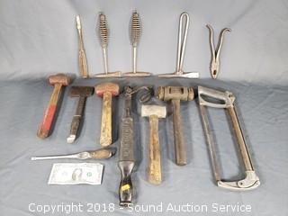 Lot #0342: Various Hammers, Hatchets & Hack Saw