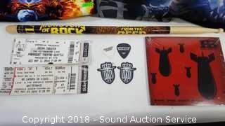 Includes: Monsters of Rock Cruise VIP Plaque & Drumstick, Hellbelly Sealed CD, White Snake Dying Live Sealed CD, Meniketti CD & Pick, Collectible Cleveland 2016 Guitar, 2 Large Tank Tops, and Small-XL T-Shirts.