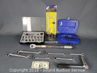Includes: Torque Wrench 1/2" Drive, 1/4" Drive Kobalt Socket Set, and Various Wrenches and Sockets.