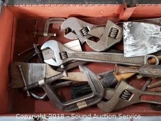 This auction is consists of a mixed variety of estate items. Includes: Vtg. Cast Iron Enamelware Stove, Norwegian Ice Axe, Drop Front Secretaries, Suit Butlers, Hutches, Guitars, Sewing Fabrics, Fransicanware, Silverplate, Yard Art, Yard Tools, Fountains, Vtg. Tools & Toolboxes, Mid-Century Clocks, Accuquilt Go! Cutter & Dies, Utility Cabinets, Firepit, Whirlpool Washer & Much More!