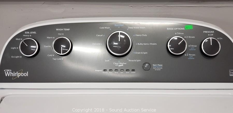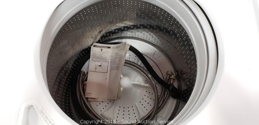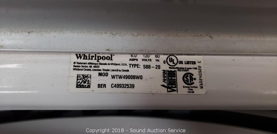 Model WTW4900BW0. Serial C40932539. Comes with drain hose, water hoses, and original owners manual. Looks to be in good condition. Approx. 43" H, 27" W, 25-1/2" D.