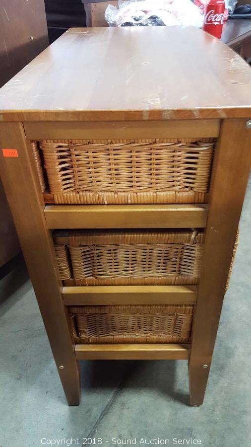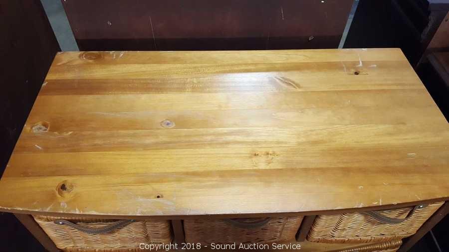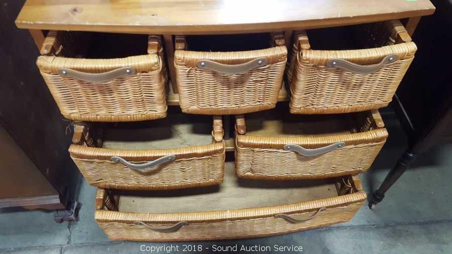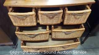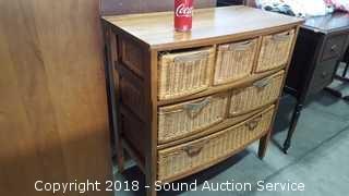 Lot #0010: Wood & Wicker 6-Drawer Dresser